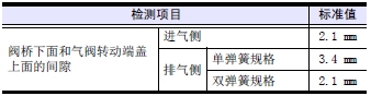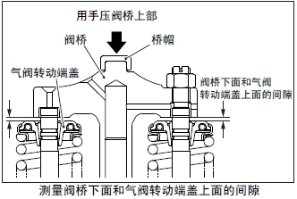 用手按壓閥橋,使和閥桿上端面接觸,檢測閥橋下面和氣閥轉動端蓋上面的間隙。間隙超過標準值范圍時,確認故障的部件后更換新品。
