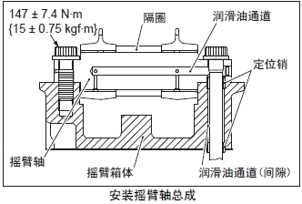 (2) 搖臂軸的銷孔和定位銷對準后,將搖臂總成安裝在搖臂箱體上。
