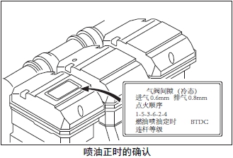 燃油噴油正時根據發動機的輸出功率、轉速和規格等不同而異,必須在No.1 搖臂罩的銘牌上予以確認。
