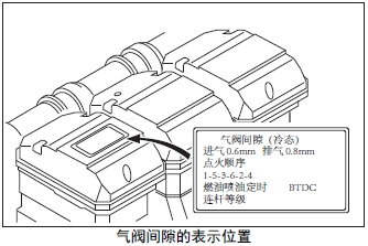 (b) 氣閥間隙的標準值指示在No.1 氣缸的搖臂罩的銘牌上。