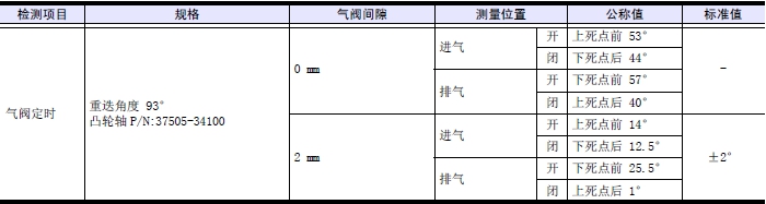 5.15.1氣閥間隙標準時 ( 厚薄規插入0 mm 時) 的氣閥開閉定時