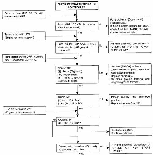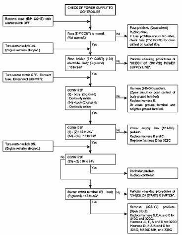 卡特彼勒312C, 315C, 318C, 319C, 320C, 321C, 322C, 325C, 330C 和 M325C 挖掘機(jī)無(wú)電源供應(yīng)至控制器 - 故障診斷