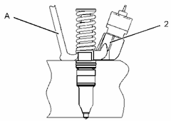 用工具 (A) 從底座撬動(dòng)并拆下電子單體噴油器 (2) 。