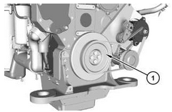 拆下其余的螺栓 (2) 。從曲軸上卸下減振器 (3) 和曲軸皮帶輪 (1) 。