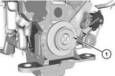 將減振器 (3) 安置在曲軸皮帶輪 (1) 上。 減振器 (3) 的重量約為 34 kg (75 lb)。