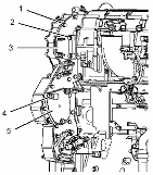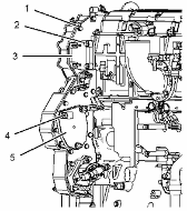 將適當?shù)钠鸬踉O(shè)備連接在前殼體 (10) 上。 前殼體 (10) 的重量約為 57 kg (125 lb)。 將前殼體 (10) 安裝在缸體的定位銷上。