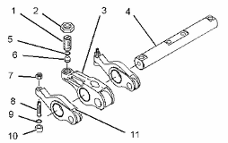將氣門搖臂 (11) 和電子單體噴油器搖臂 (3) 安裝到搖臂軸組件 (4) 上。