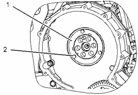 卸下螺栓 (2) 和止推盤 (1) 。