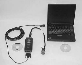 將裝有 Cat ET 軟件的筆記本電腦連接到 Cat 數據鏈路的接頭 (3) 上。 Cat ET 用來獲得診斷信息。 Cat ET 還用來編寫所有電子控制裝置上的各種功能。