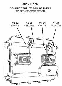 參見表5。 拆下相應(yīng)端子的封塞。 不要丟棄這些封塞。 完成正時標(biāo)定后,可重新安裝封塞。 廢棄線束標(biāo)簽上的針腳。 將 170-3519 線束 的白色導(dǎo)線安裝到相應(yīng)位置。 將 170-3519 線束 的黃色導(dǎo)線安裝到相應(yīng)位置。
