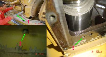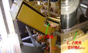第一缸排氣沖程式上死點 并按柴油機正常轉向再將飛輪1轉動360°將定正時螺栓2擰入氣輪,凸輪固定銷孔3與凸輪軸銷孔4已對不上證明是第一缸排氣沖程式上死點??ㄌ乇死詹裼桶l動機|卡特彼勒柴油發動機氣門間隙調節技術|卡特彼勒柴油發動機氣門間隙調節資料|卡特彼勒柴油發動機氣門間隙調節維修服務商