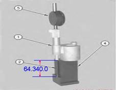 噴油器定時高度范圍:64.34mm。將千分表和定時固定器放入6V3177定位規4上,移動千分表直到指針為零,然后固定表。