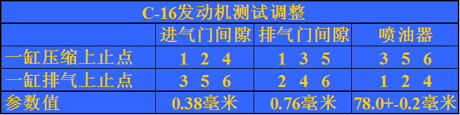 盤車到一缸壓縮上止點,調整第1,2,4缸進氣門和1,3,5缸排氣門的間隙;檢查第3,5,6缸的噴油器正時,不在下表范圍內的則進行調整 盤車到一缸排氣上止點,調整第3,5,6缸進氣門和2,4,6缸排氣門的間隙;檢查第1,2,4缸的噴油器正時,不在下表范圍內的則進行調整 重復上面兩步,核查一遍,將氣門的調整螺栓的鎖緊螺母鎖緊到22+-5磅英尺,將噴油器的調整螺栓的鎖緊螺母鎖緊到74+-7磅英尺 注意:一定要等發動機完全冷卻后才可進行上述調整