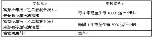 VOLVO沃爾沃柴油機的維修保養基本知識 安全注意事項 VOLVO沃爾沃柴油發動機每日檢查項目 養成在起動發動機之前和停機后直觀檢查發動機的習慣。這有助于你及時發現燃油、潤滑油或冷卻液的泄漏和其它一些已經發生或將要發生的異常情況。 VOLVO沃爾沃柴油發動機一般的常規保養 a) 檢查/更換空氣濾清器 發動機停機后,空氣阻塞指示器如仍滯留紅標時,則應更換空氣濾清器。更換后應按壓阻塞指示器上的按鈕使其指示復位。 注意!空氣阻塞指示器未顯示紅標時,需更換空氣濾清器。被更換的空氣濾清器不能清洗和回用。 重要事項!連續運行時,應該每8小時檢查一次空氣濾清器。 b) 檢查VOLVO沃爾沃柴油發動機進氣管路有無泄漏 檢查進氣管路有無裂縫或其它損壞。如有必要應予更換。檢查所有的軟管夾箍。 c) 調整VOLVO沃爾沃柴油發動機怠速 首先檢查空氣濾清器是否堵塞。檢查當油門機構處于怠速位置時,噴油泵上的油門拉桿(1)是否靠在怠速限位螺釘(2)上。還要檢查當油門控制桿在最大油量位置時,油門拉桿是否壓在最大供油限位螺釘(3)上。如有必要,則進行調整。 警告提示!靠近正在運行的發動機或在其上工作是有危險的。要小那些正在旋轉的零部件和高溫表面。 d) VOLVO沃爾沃柴油發動機RSV調速器 1) 讓發動機在怠速下運行。 2) 如有必要,卸下園項螺帽(1),擰松鎖緊螺母(2),用螺釘(3)調整發動機怠速。 如果發動機空轉轉速不穩,應該按下述方法調整其穩定性。 1) 拆下園頂螺帽(4)并擰松鎖緊螺母(5)。小心地按順時針方向擰動怠速穩定螺(6),直到發動機轉速穩定為止。 2) 檢查最高空轉轉速有否改變,如有改變,則說明怠速穩定螺釘(6)調整過大。 3) 完成調整后,鎖緊怠速穩定螺釘(6),擰上園頂螺帽(4) e) VOLVO沃爾沃柴油發動機RQV,RQ調速器 1) 讓發動機在怠速下運行。 2) 如有必要,用怠速螺釘(1)調整發動機的轉速。 f) 檢查和調整VOLVO沃爾沃柴油發動機傳動皮帶 傳動皮帶的檢查和調整應該在發動機運行后皮帶熱態時進行。 在張緊充電發電機皮帶之前,應先擰松螺栓(A),使皮帶在兩皮帶輪的中點處可被壓下10mm,然后再擰緊螺栓(A)。成對工作的皮帶磨損后應同時更換。 風扇皮帶有自動張緊器,不需要調整。但是必須檢查皮帶的狀況。如有必要,予以更換。 VOLVO沃爾沃柴油發動機潤滑系統 潤滑油的更換周期取決于潤滑油的品質和燃油的硫含量,在40到500小時之間不等。要注意潤滑油的更換周期決不可超過12個月。 如果要求潤滑油的更換周期比下表所列時間更長,則潤滑油的性狀必須由潤滑油制造廠商作定期檢測。 VOLVO沃爾沃柴油發動機潤滑油 注意!只要能滿足上述要求,礦基的、半合成和全合成潤滑油都可以使用。 1)必須使用TBN14-20潤滑油 VDS=Volvo發動機潤滑油規格 ACEA=歐洲汽車制造商協會 API=美國石油學會 VOLVO沃爾沃柴油發動機機油粘度 應根據穩定的外界溫度,按此圖表選擇粘度合適的潤滑油。*指合成或半合成潤滑油。 檢查潤滑油油位 確保油位在MIN(最低)和MAX(最高)標記之間。 重要事項!連續運行時應每隔8小時檢查一次油位。 檢查靜態未運轉發動機的油位時,應查看油標尺上標有“STOP”(停機)的那一面(至少等發動機停止運行3分鐘后)。 警告提示!靠近運行中的發動機或在其上工作是有危險的。要小心那些旋轉著的零部件和灼熱表面。 更換VOLVO沃爾沃柴油發動機潤滑油和潤滑油濾清器 必須遵守推薦的潤滑油更換周期,并必須同時更換潤滑油濾清器。 a) 徹底清潔濾清器安裝座,以免更換濾清器時污物進入發動機。 b) 使發動機運行至正常的工作溫度。 警告提示!高溫潤滑油和灼熱表面會造成燙傷。 c) 拆下底部螺塞,放盡潤滑油。 d) 換用新墊片后裝上底部螺塞。 e) 拆下濾情器 (1)和旁通濾情器(2)。檢查并確保發動機的接合面上無殘留墊片。給新的濾清器加注潤滑油,并在新墊片上薄施一層潤滑油。用手擰緊濾清器直到壓住墊片,然后再擰緊半圈(不要擰得過緊?。?。 f) 加注潤滑油至正確油位。不得超過MAX(最高)油位。 g) 起動發動機,使其怠速運行。檢查潤滑油油壓是否正常。 h) 關停發動機。檢查濾清器周圍有無潤滑油泄漏。如有必要,添加潤滑油。 將用過的潤滑油及其濾清器按照環保要求處理。 VOLVO沃爾沃柴油發動機冷卻系統 冷卻系統應該使用能夠保護發動機內部免受腐蝕和凍結(如果氣候條件有此要求)的冷卻液。切勿只用普通水作冷卻液。 防腐添加劑的效能會隨時間而下降,因此必須定期更換冷卻液。若能遵循富豪遍達有關冷卻液的各項建議,則可以采用下列更換周期。 重要事項!更換冷卻液時,必須先徹底沖洗冷卻系統,見“沖洗冷卻系統”。更換冷卻液時,毋須同時更換冷卻液濾清器(附件)。但在首次更換冷卻液的6個月后必須更換冷卻液濾清器,此后可每6個月更換一次,見“更換冷卻液濾清器”。 VOLVO沃爾沃柴油發動機冷卻液 重要事項!為了避免發動機和冷卻系統因凍結或腐蝕而造成阻塞或損壞,必須遵守下列建議: 水質 切記必須使用符合ASTMD4985要求的凈水。如果不符合其要求,冷卻系統就有可能阻塞,從而降低冷卻效率。如果水的凈度不符合要求,則必須使用蒸餾水或已配制好的冷卻液。 總顆粒物 <340 ppm 總硬度 <9.5°dH 氯化物 <40 ppm 硫酸鹽 <100 ppm PH值 5.5-9 硅 < 20mg SiO2 perI 鐵 <0.10 ppm 錳 <0.05 ppm 導電率 < 500 uS per cm 有機物含量,CODMn <15 mg kM