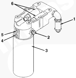 1供油接頭,2燃油出口接頭,3燃油濾清器,4供油溫度傳感器,5供油壓力傳感器,6燃油供應泵 1 和 2。