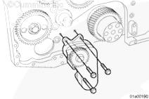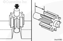 如果從軸上拆下主泵驅動齒輪,支撐驅動齒輪,使用手扳壓機將軸推過齒輪至規(guī)定位置。