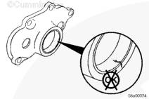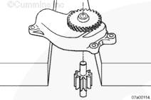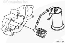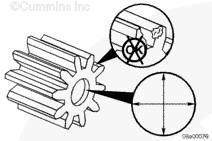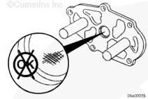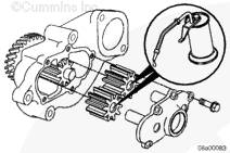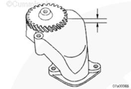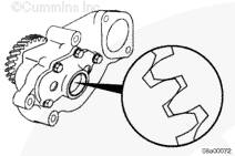 通過緩慢轉動驅動齒輪和檢查泵齒輪是否損壞來檢查機油泵能否繼續(xù)使用。如果機油泵內有零件損壞,則此泵必須大修或更換。有關大修的詳細信息,請參考《 QST30 大修手冊》(公告號 3666190)中的第 7 節(jié)。