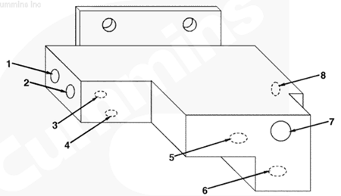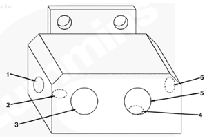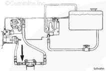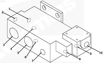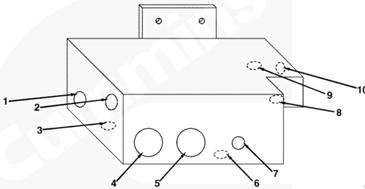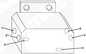 1左排燃油歧管(零件號 3094772),2流至 EHAB 進(jìn)口的燃油(抽吸未經(jīng)過濾的燃油),3流至右排燃油歧管(右排供油)的燃油(抽吸未經(jīng)過濾的燃油),4自油箱/粗濾器的供油進(jìn)口,5自右排燃油歧管流入的燃油(回油),6流至供油箱的燃油(回油),7自 EHAB/噴油泵溢流管和噴油器回油管(兩條管路)的回油。