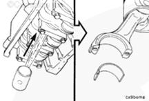 將上軸瓦裝入連桿中,軸瓦定位舌座入連桿上的槽中。