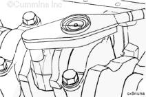 用發(fā)動(dòng)機(jī)盤車工具(零件號(hào) 3824591)旋轉(zhuǎn)曲軸,直到活塞位積碳下方(可在活塞環(huán)行程區(qū)域的上方找到)。