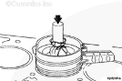 將活塞環壓縮器頂住缸套。將活塞穿過活塞環壓縮器推入缸套中。推動活塞,直到頂環完全進入缸套。