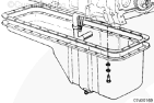 注: 發動機使用多種密封墊和/或 RTV 組合提供密封。安裝油底殼時,使用油底殼上原有的密封墊/或 RTV 組合。