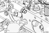 注: 安裝噴油器導(dǎo)線,使它們不與搖臂或發(fā)動(dòng)機(jī)制動(dòng)殼體產(chǎn)生干涉。如果搖臂能夠接觸到噴油器線束,會(huì)摩擦導(dǎo)線絕緣層,并導(dǎo)致噴油器電路故障代碼。
