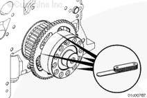 嘗試在四個(gè)位置(相距約 90 度),在曲軸齒輪和轉(zhuǎn)速信號(hào)輪之間插入 [0.25 mm] 0.010-英寸的塞尺來檢查安裝。