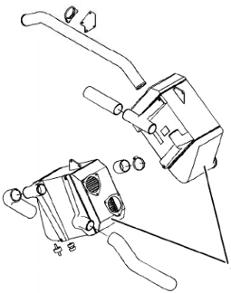 Perkins4016柴油發(fā)動(dòng)機(jī)在發(fā)動(dòng)機(jī)后端安裝了四個(gè)渦輪增壓器(1)。每個(gè)渦輪增壓囂的渦輪機(jī)側(cè)都連接至該渦輪增壓器的排氣歧管。每個(gè)渦輪增壓器的壓縮機(jī)側(cè)都通過(guò)管道與后冷器殼體相連。