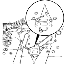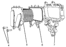 2將新密封墊(3)(未顯示)定位到Perkins1106A/C發(fā)動機機油冷卻器組件(2)上。將螺栓(1)安裝到密封墊的鋸齒形孔中。