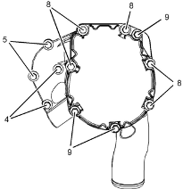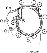 Perkins1106A/C發(fā)動(dòng)機(jī)水泵-拆卸 拆卸步驟 開始: a.拆卸風(fēng)扇和風(fēng)扇皮帶輪。請(qǐng)參閱《Perkins1106A/C發(fā)動(dòng)機(jī)拆解和組裝》,“風(fēng)扇-拆卸和安裝”。 注意:在檢驗(yàn)、保養(yǎng)、測(cè)試、調(diào)整及維修產(chǎn)品時(shí),務(wù)必留心,確保液體盛裝在容器中。在打開任何腔室或拆解任何儲(chǔ)有液體的部件之前,要準(zhǔn)備好用合適的容器收集液體。按照本地法規(guī)和指令處置所有液體。 1.從冷卻系統(tǒng)將冷卻液排入合適的容器以便保存或廢棄這些冷卻液。有關(guān)正確的步驟,請(qǐng)參閱《Perkins1106A/C發(fā)動(dòng)機(jī)操作和保養(yǎng)手冊(cè)》,“冷卻系統(tǒng)冷卻液-更換”。 2.松開軟管卡箍,將軟管從Perkins1106A/C發(fā)動(dòng)機(jī)水泵進(jìn)口上卸下。 3拆卸螺栓(4)、(5)和(8)。 注:螺栓有三種不同的長(zhǎng)度。注意三種不同長(zhǎng)度螺栓的位置。 4.將Perkins1106A/C發(fā)動(dòng)機(jī)水泵(3)從前蓋(1)上卸下。 注:如有必要,使用軟錘輕敲Perkins1106A/C發(fā)動(dòng)機(jī)水泵來(lái)松開Perkins1106A/C發(fā)動(dòng)機(jī)水泵。 5.拆下密封墊(2)。 6.如有必要,從Perkins1106A/C發(fā)動(dòng)機(jī)水泵上卸下蓋。按照步驟6.a至步驟6.c以拆下蓋。 a.拆下螺栓(9)。 b.拆下蓋(7)。 c.拆下密封墊(6)(未顯示)。 Perkins1106A/C發(fā)動(dòng)機(jī)水泵-安裝 安裝步驟 注意:在檢驗(yàn)、保養(yǎng)、測(cè)試、調(diào)整及維修產(chǎn)品時(shí),務(wù)必留心,確保液體盛裝在容器中。在打開任何腔室或拆解任何儲(chǔ)有液體的部件之前,要準(zhǔn)備好用合適的容器收集液體。按照本地法規(guī)和指令處置所有液體。 1.確保Perkins1106A/C發(fā)動(dòng)機(jī)水泵清潔且無(wú)磨損或損壞。如有必要,更 換Perkins1106A/C發(fā)動(dòng)機(jī)水泵。 2如有必要,將蓋安裝到Perkins1106A/C發(fā)動(dòng)機(jī)水泵。遵循步驟2.a至2.d,安裝蓋。 a.清潔蓋(7)的密封墊表面。 b.將新密封墊(6)(未顯示)定位到Perkins1106A/C發(fā)動(dòng)機(jī)水泵(3)上。 c.將蓋(7)安裝到Perkins1106A/C發(fā)動(dòng)機(jī)水泵(3)上。 d將螺栓(9)安裝到蓋(7)上。用手?jǐn)Q緊螺栓。 3清潔前蓋(1)的密封墊表面。 4將工具(A)安裝到位置(X)中。 5使用工具(A)對(duì)準(zhǔn)新密封墊(2)與前蓋(1)。將密封墊安裝到前蓋上。 6對(duì)準(zhǔn)Perkins1106A/C發(fā)動(dòng)機(jī)水泵(3)與工具(A)。將Perkins1106A/C發(fā)動(dòng)機(jī)水泵安裝到前蓋(1)上。 注:確保Perkins1106A/C發(fā)動(dòng)機(jī)水泵的齒輪與噴油泵的齒輪相嚙合。 蓋板的螺栓(9)。 (5)M8×30mm (4)M8×75mm (8)M8×65mm 7安裝螺栓(4)、(5)和(8)。請(qǐng)參閱插圖92。用手?jǐn)Q緊螺栓。 注:確保所有不同長(zhǎng)度的螺栓安裝位置正確。 8.拆下工具(A),并安裝剩余螺栓(4)。 9.按圖93中的順序擰緊螺栓(4)、(5)、(8)和(9)至扭矩為22N·m(195lbin)。 10.將軟管安裝到Perkins1106A/C發(fā)動(dòng)機(jī)水泵進(jìn)口。牢固地?cái)Q緊軟管卡箍。 11向冷卻系統(tǒng)加注冷卻液。有關(guān)正確的步驟,請(qǐng)參閱《Perkins1106A/C發(fā)動(dòng)機(jī)操作和保養(yǎng)手冊(cè)》,“冷卻系統(tǒng)冷卻液-更換”。 結(jié)束: a.安裝風(fēng)扇和風(fēng)扇皮帶輪。請(qǐng)參閱《Perkins1106A/C發(fā)動(dòng)機(jī)拆解和組裝》,“風(fēng)扇-拆卸和安裝”。