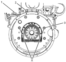 Perkins1106A/C發(fā)動(dòng)機(jī)機(jī)殼體-拆卸和安裝 (標(biāo)準(zhǔn)Perkins1106A/C發(fā)動(dòng)機(jī)機(jī)殼體) 拆卸步驟 開始: a.拆下飛輪。有關(guān)正確的步驟,請(qǐng)參閱《Perkins1106A/C發(fā)動(dòng)機(jī)拆解和組裝》,“飛輪-拆卸”。 注意:保持所有零件清潔無(wú)雜質(zhì)。雜質(zhì)會(huì)造成快速磨損和縮短部件壽命。 1將螺栓(3)從Perkins1106A/C發(fā)動(dòng)機(jī)飛輪Perkins1106A/C發(fā)動(dòng)機(jī)機(jī)殼體(1)的位置(X)上拆下。 2將工具(A)安裝在Perkins1106A/C發(fā)動(dòng)機(jī)飛輪Perkins1106A/C發(fā)動(dòng)機(jī)機(jī)殼體(1)上的位置(X)。 3將適當(dāng)?shù)钠鸬踉O(shè)備安裝到Perkins1106A/C發(fā)動(dòng)機(jī)飛輪Perkins1106A/C發(fā)動(dòng)機(jī)機(jī)殼體上來支撐住Perkins1106A/C發(fā)動(dòng)機(jī)飛輪Perkins1106A/C發(fā)動(dòng)機(jī)機(jī)殼體。Perkins1106A/C發(fā)動(dòng)機(jī)飛輪Perkins1106A/C發(fā)動(dòng)機(jī)機(jī)殼體的重量約為40kg(88lb)。 4將螺栓(2)和其余螺栓(3)從Perkins1106A/C發(fā)動(dòng)機(jī)飛輪Perkins1106A/C發(fā)動(dòng)機(jī)機(jī)殼體(1)上拆下。 5使用適當(dāng)?shù)钠鸬踉O(shè)備,將Perkins1106A/C發(fā)動(dòng)機(jī)飛輪Perkins1106A/C發(fā)動(dòng)機(jī)機(jī)殼體(1)從Perkins1106A/C發(fā)動(dòng)機(jī)缸體上卸下。 6.拆下防塵密封件(5)。 7.如有必要,將定位銷(4)從Perkins1106A/C發(fā)動(dòng)機(jī)缸體上卸下。 安裝程序(標(biāo)準(zhǔn)Perkins1106A/C發(fā)動(dòng)機(jī)機(jī)殼體) 注意:保持所有零件清潔無(wú)雜質(zhì)。雜質(zhì)會(huì)造成快速磨損和縮短部件壽命。 1.確保Perkins1106A/C發(fā)動(dòng)機(jī)飛輪Perkins1106A/C發(fā)動(dòng)機(jī)機(jī)殼體清潔且無(wú)損壞。如有必要,更換Perkins1106A/C發(fā)動(dòng)機(jī)飛輪Perkins1106A/C發(fā)動(dòng)機(jī)機(jī)殼體。 2檢查Perkins1106A/C發(fā)動(dòng)機(jī)曲軸后油封(6)有無(wú)泄漏。如果觀察到漏油,更換Perkins1106A/C發(fā)動(dòng)機(jī)曲軸后油封。有關(guān)正確的步驟,請(qǐng)參閱《Perkins1106A/C發(fā)動(dòng)機(jī)拆解和組裝》,“Perkins1106A/C發(fā)動(dòng)機(jī)曲軸后油封-拆卸”和《Perkins1106A/C發(fā)動(dòng)機(jī)拆解和組裝》,“Perkins1106A/C發(fā)動(dòng)機(jī)曲軸后油封-安裝”。 3清潔Perkins1106A/C發(fā)動(dòng)機(jī)缸體后表面。如有必要,將定位銷(4)安裝到Perkins1106A/C發(fā)動(dòng)機(jī)缸體上。 4將工具(A)安裝到Perkins1106A/C發(fā)動(dòng)機(jī)缸體上。 5安裝防塵密封件(5)。 6將適當(dāng)?shù)钠鸬踉O(shè)備安裝到Perkins1106A/C發(fā)動(dòng)機(jī)飛輪Perkins1106A/C發(fā)動(dòng)機(jī)機(jī)殼體上。Perkins1106A/C發(fā)動(dòng)機(jī)飛輪Perkins1106A/C發(fā)動(dòng)機(jī)機(jī)殼體的重量約為40kg(88lb)。 7使用起吊設(shè)備對(duì)準(zhǔn)Perkins1106A/C發(fā)動(dòng)機(jī)飛輪Perkins1106A/C發(fā)動(dòng)機(jī)機(jī)殼體(1)與工具(A)。將Perkins1106A/C發(fā)動(dòng)機(jī)飛輪Perkins1106A/C發(fā)動(dòng)機(jī)機(jī)殼體安裝到Perkins1106A/C發(fā)動(dòng)機(jī)缸體上。 8安裝螺栓(2)和螺栓(3)。 9拆下工具(A)。安裝其余的螺栓(3)。 10.當(dāng)安裝了8.8級(jí)別的螺栓時(shí),按照步驟10.a至步驟10.b。 a.擰緊螺栓(3)至扭矩為63N·m(46lbft)。 b.擰緊螺栓(2)至扭矩為78N·m(58lbft)。 11.當(dāng)安裝了10.9級(jí)別的螺栓時(shí),按照步驟11.a至步驟11.b。 a.擰緊螺栓(3)至扭矩為115N·m(85lbft)。 b.擰緊螺栓(2)至扭矩為190N·m(140lbft)。 12.檢查Perkins1106A/C發(fā)動(dòng)機(jī)飛輪Perkins1106A/C發(fā)動(dòng)機(jī)機(jī)殼體(1)和Perkins1106A/C發(fā)動(dòng)機(jī)曲軸的對(duì)準(zhǔn)。有關(guān)更多信息,請(qǐng)參閱《系統(tǒng)操作、測(cè)試和調(diào)整》,“Perkins1106A/C發(fā)動(dòng)機(jī)飛輪Perkins1106A/C發(fā)動(dòng)機(jī)機(jī)殼體-檢查”。 結(jié)束: a.安裝飛輪。有關(guān)正確的步驟,請(qǐng)參閱《Perkins1106A/C發(fā)動(dòng)機(jī)拆解和組裝》,“飛輪-安裝”。