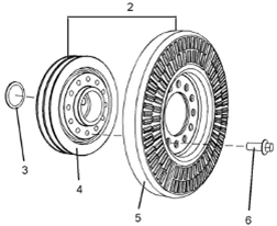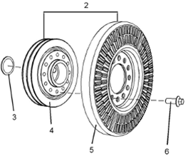 b.從Perkins1106A/C發(fā)動機曲軸皮帶輪組件(2)上拆下螺栓(6)。