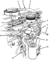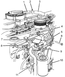 4將軟管組件(11)連接到Perkins1106A/C發(fā)動(dòng)機(jī)曲軸箱呼吸器的濾清器座(5)上。