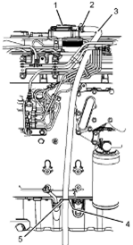 3從Perkins1106A/C發(fā)動(dòng)機(jī)氣門(mén)機(jī)構(gòu)蓋(1)和Perkins1106A/C發(fā)動(dòng)機(jī)曲軸箱呼吸器的濾清器座(5)上拆下軟管(3)。