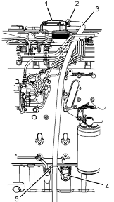 6將軟管(3)連接到Perkins1106A/C發(fā)動(dòng)機(jī)氣門(mén)機(jī)構(gòu)蓋(1)和Perkins1106A/C發(fā)動(dòng)機(jī)曲軸箱呼吸器的濾清器座(5)上。