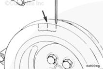 制作一個導(dǎo)線指示箭頭并安裝在康明斯ISB5.9 G CM2180 發(fā)動機(jī)前部。用一段導(dǎo)線放在齒輪室蓋其中的一個螺釘下面并擰緊就可以作到這一點(diǎn)。導(dǎo)線必須從齒輪室蓋延伸到曲軸減振器上某個容易被看到的地方。