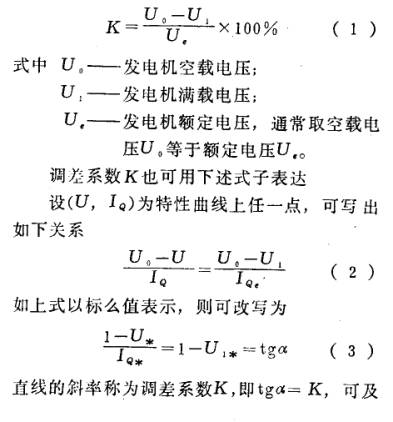 In order to quantitatively express the regulation characteristic, adopts the difference coefficient concept, generator no-load voltage and full load voltage difference of rated voltage ratio called the difference coefficient K.