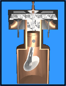 3、作功行程.活塞從上死點移動到下死點,進氣門、 排氣門關閉.